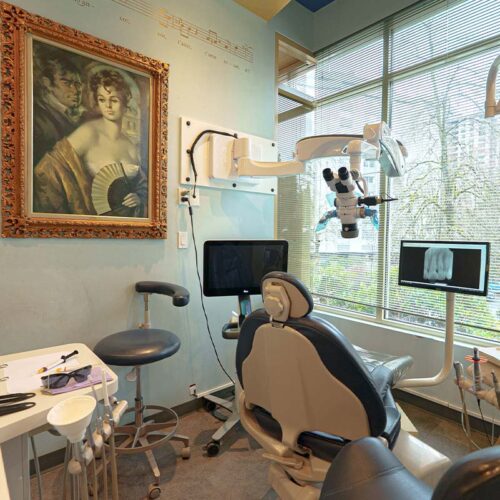 At Bel Canto Dental, you enjoy a unique clinic setting based on founder Dr. Mackie’s love of opera. From a young age he was encouraged by his parents to listen to classical music and opera. He was intrigued at how loud a singing voice could be unassisted by microphone, but also by the beauty of it. He sings as well and has studied classical voice which has given him a true appreciation of the masters of opera. Bel Canto literally means “beautiful singing.” The clinic is “operatic” in style, filled with art and color. It’s an environment where every detail is designed to make you feel comfortable and relaxed. In 2022, Dr. Al Falsafi and Dr. Shima Khalaji joined Dr. Mackie as new owners and continue to honour the legacy Dr. Mackie created.
